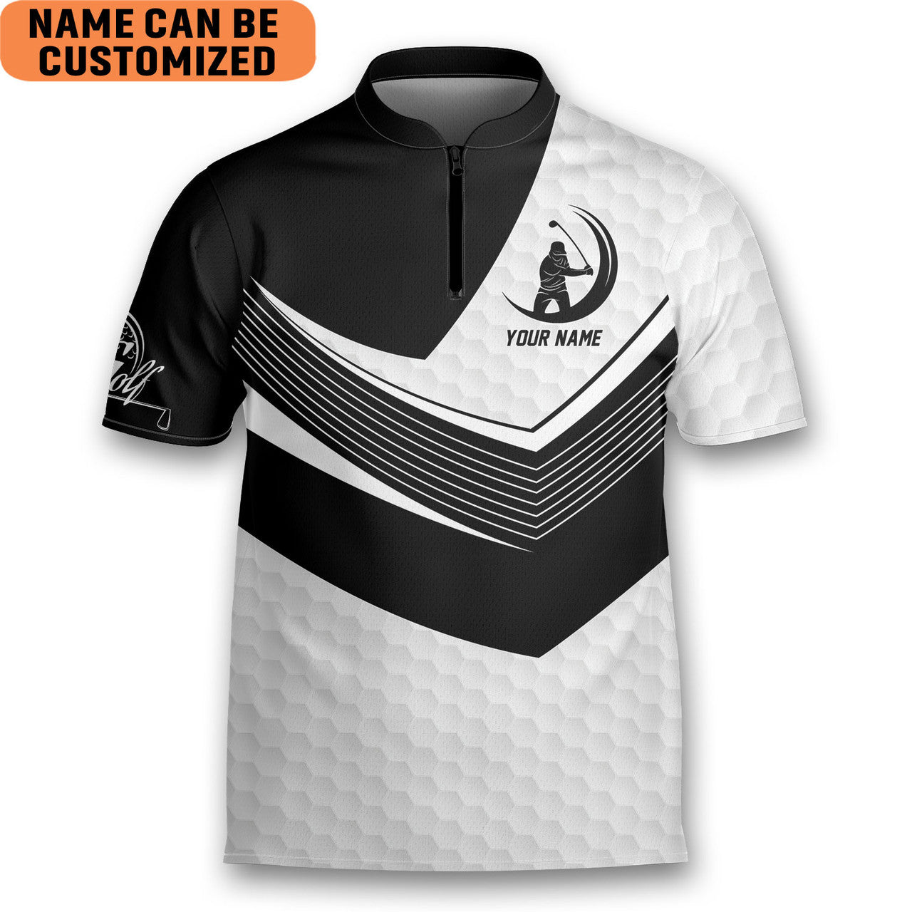 Custom Personalized Love Golf Black/White Golfing Mandarin Zipper Jersey