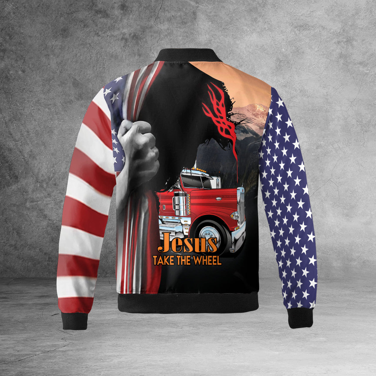 Custom Personalized Name Jesus Take The Wheel Driver Trucker Fleece Bomber Jacket
