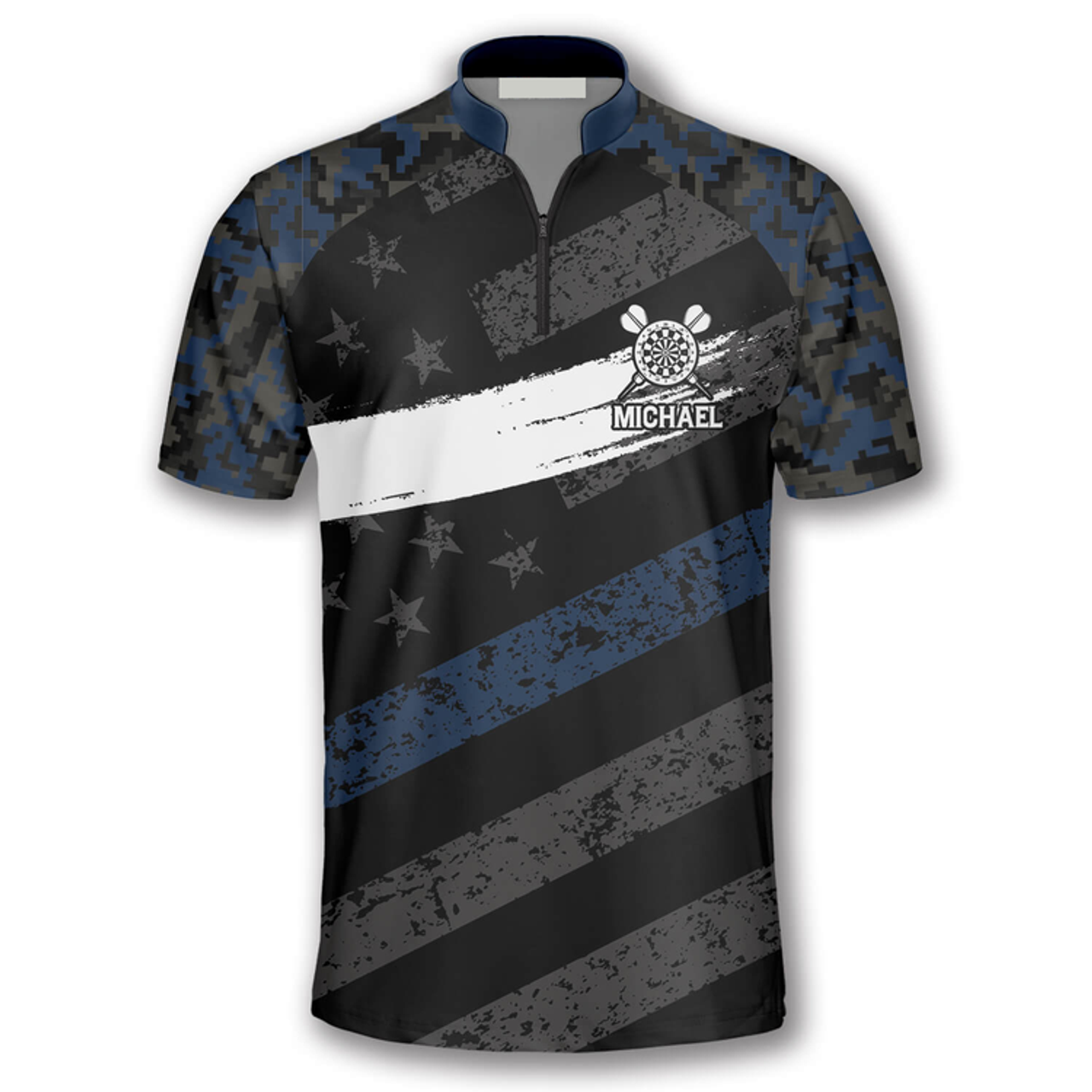 Custom Personalized Passionate Blue Camo Custom Darts Jerseys for Men