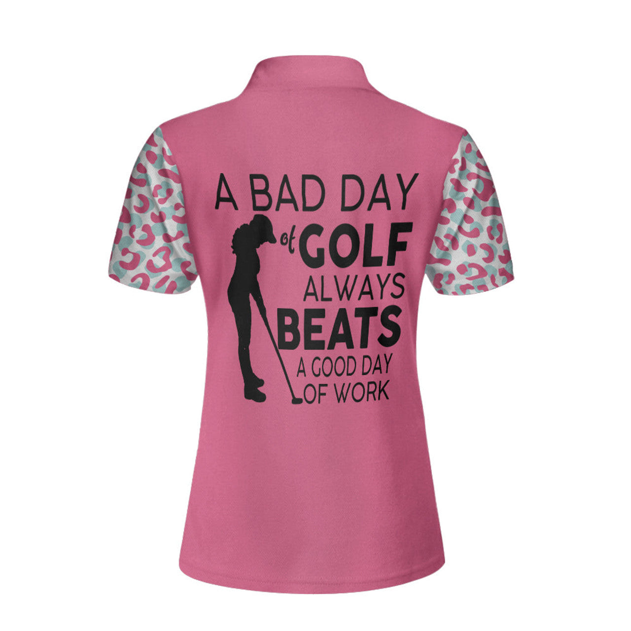 Custom Personalized Pink Leopard Women Polo Shirt, A Bad Day Of Golf Always Beats A Good Day Of Work Leopard Short Sleeve Shirt, Best Golf Shirt For Women, Gift For Golfers