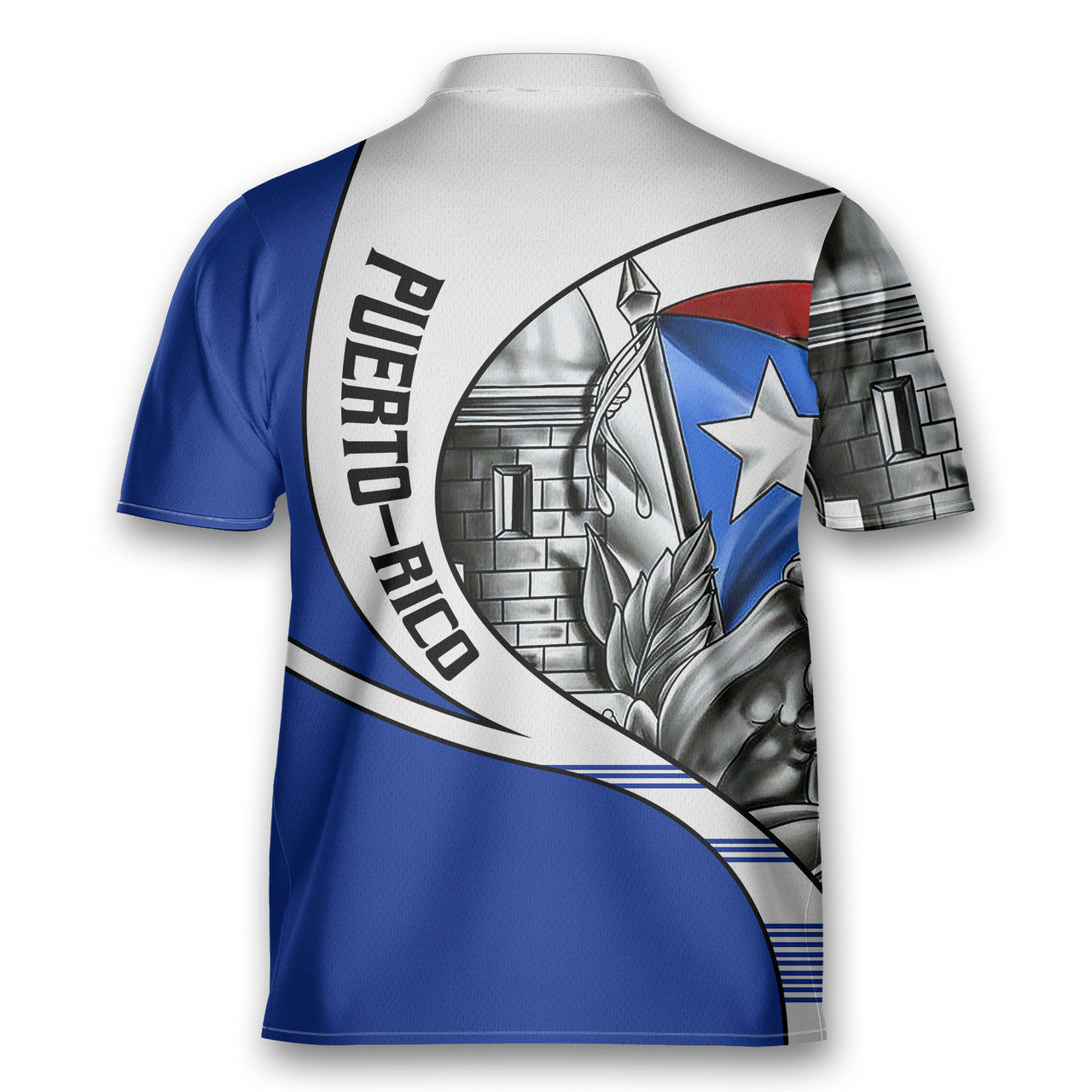 Custom Personalized Puerto Rico Conqui Bowling Jersey Style Polo Quick Zip Blue White Shirt
