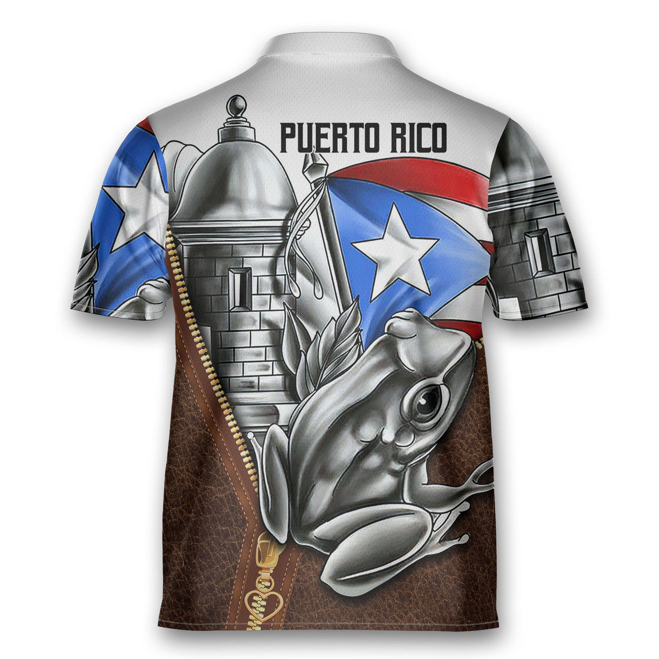 Custom Personalized Puerto Rico Coqui Bowling Jersey Style Polo Zipper Vintage Leather 01
