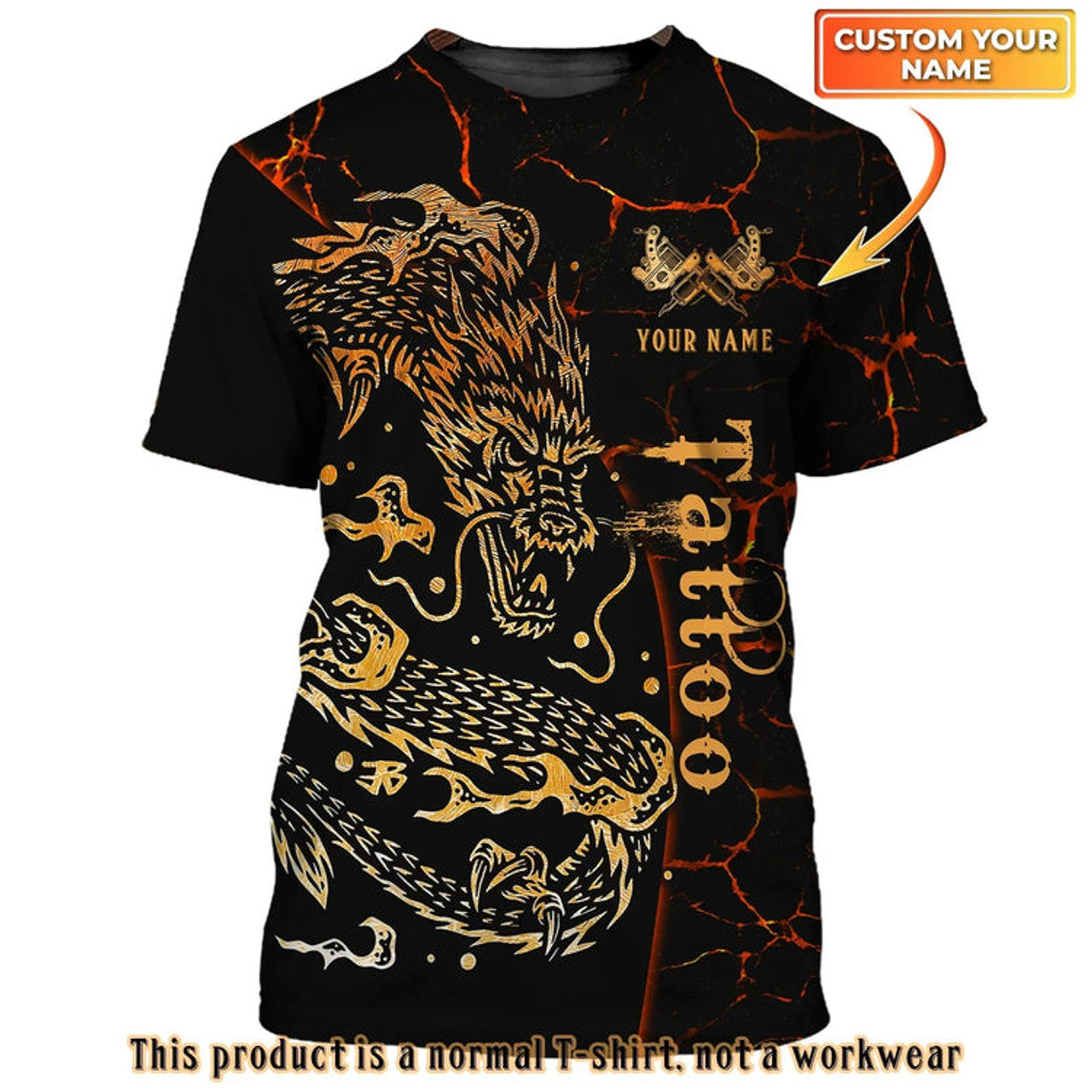 Custom Personalized With Name Dragon Tattoo T-Shirt, Gift For Dragon Lover, Dragon Shirt Tattoo Tee 3D