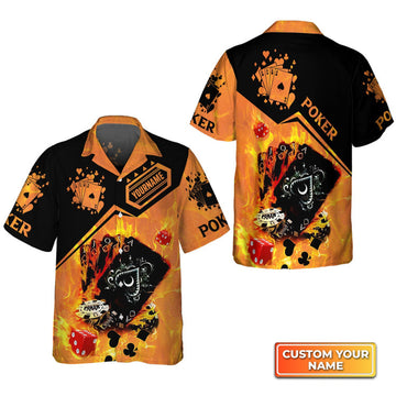 Custom Poker Royal Flush On Fire Personalized Name 3D Hawaiian Shirt For Poker Players