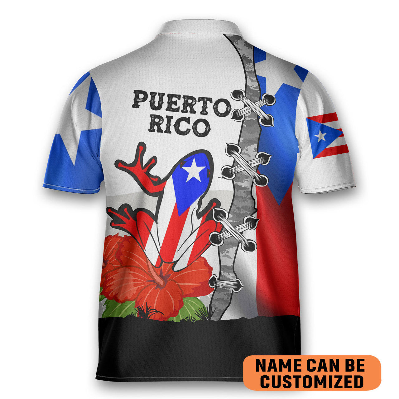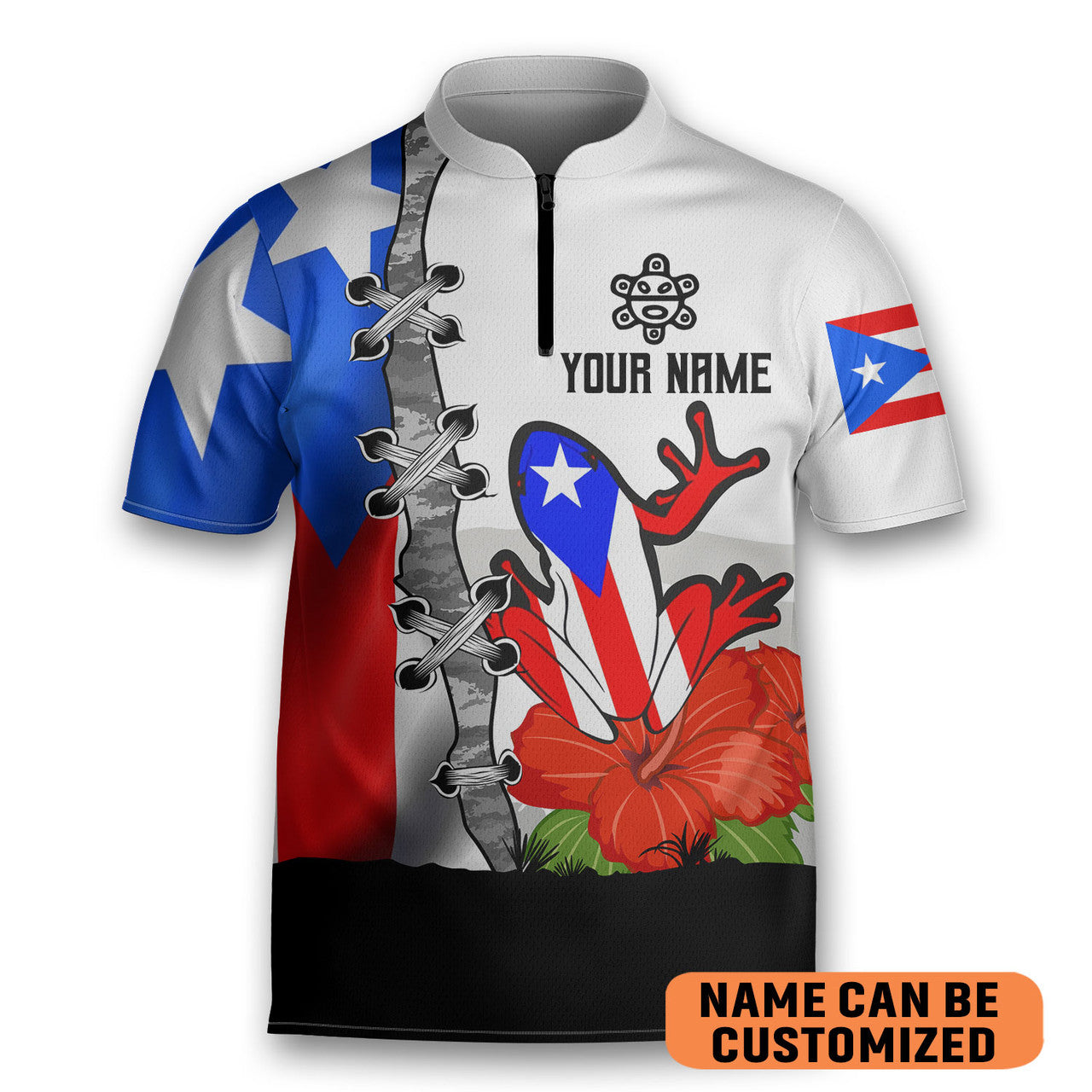 Custom Puerto Rico Flower Coqui Flag Light Bowling Jersey Zipper Polo Shirt
