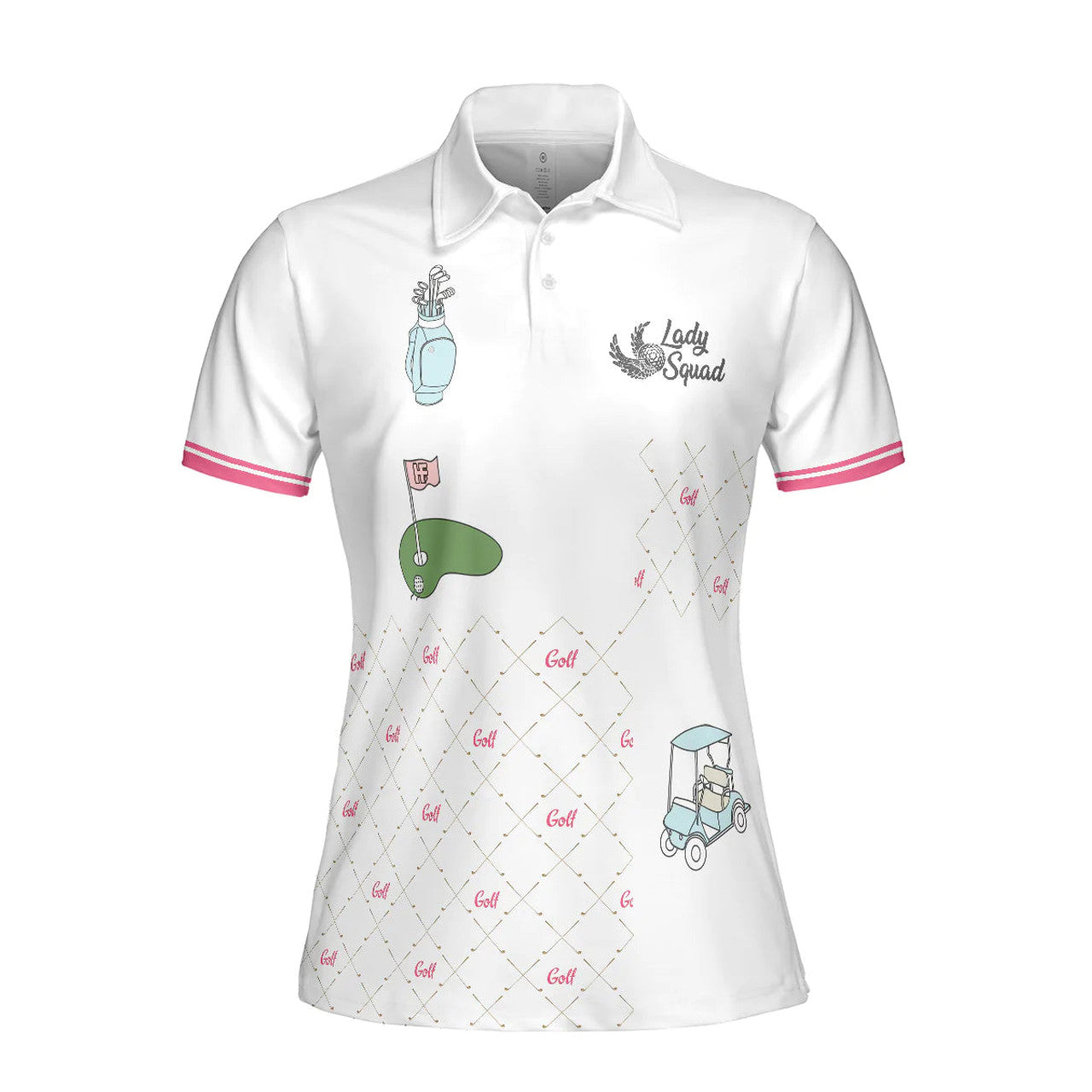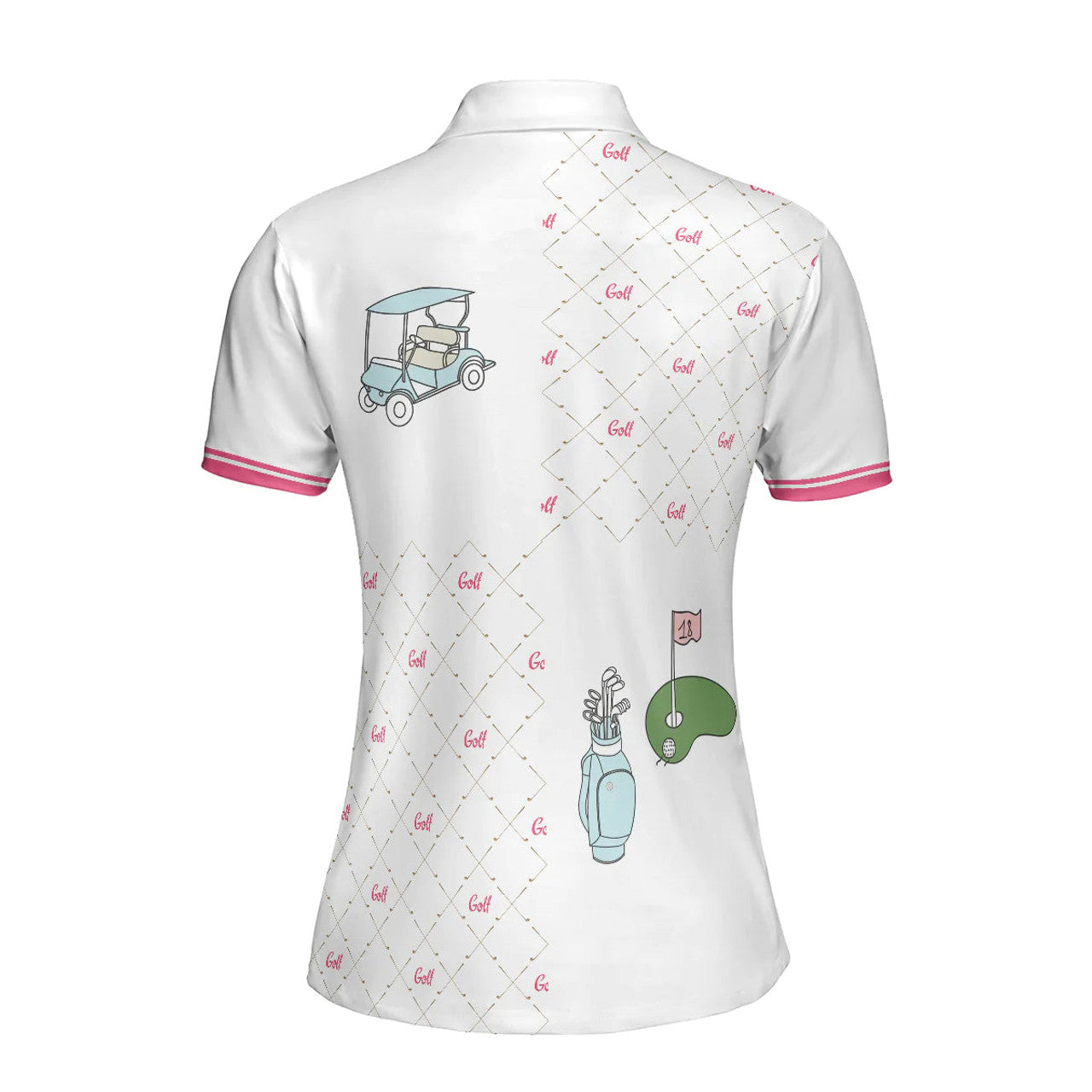 Custom Ready For A Golf Day Golf Short Sleeve Women Polo Shirt, White And Pink Golf Shirt For Ladies - Gift For Golfer