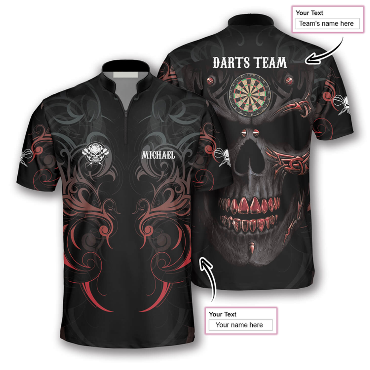 Custom Red Skull Smoke Tribal Pattern Custom Darts Jerseys for Men, Gift for Dart Lovers
