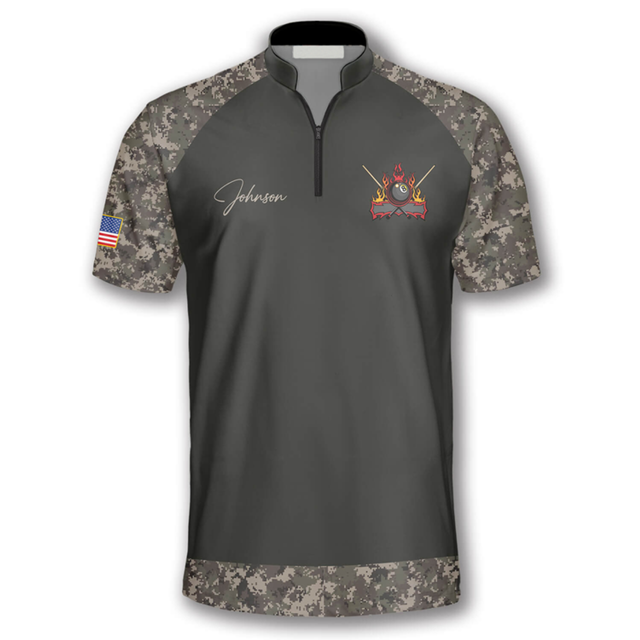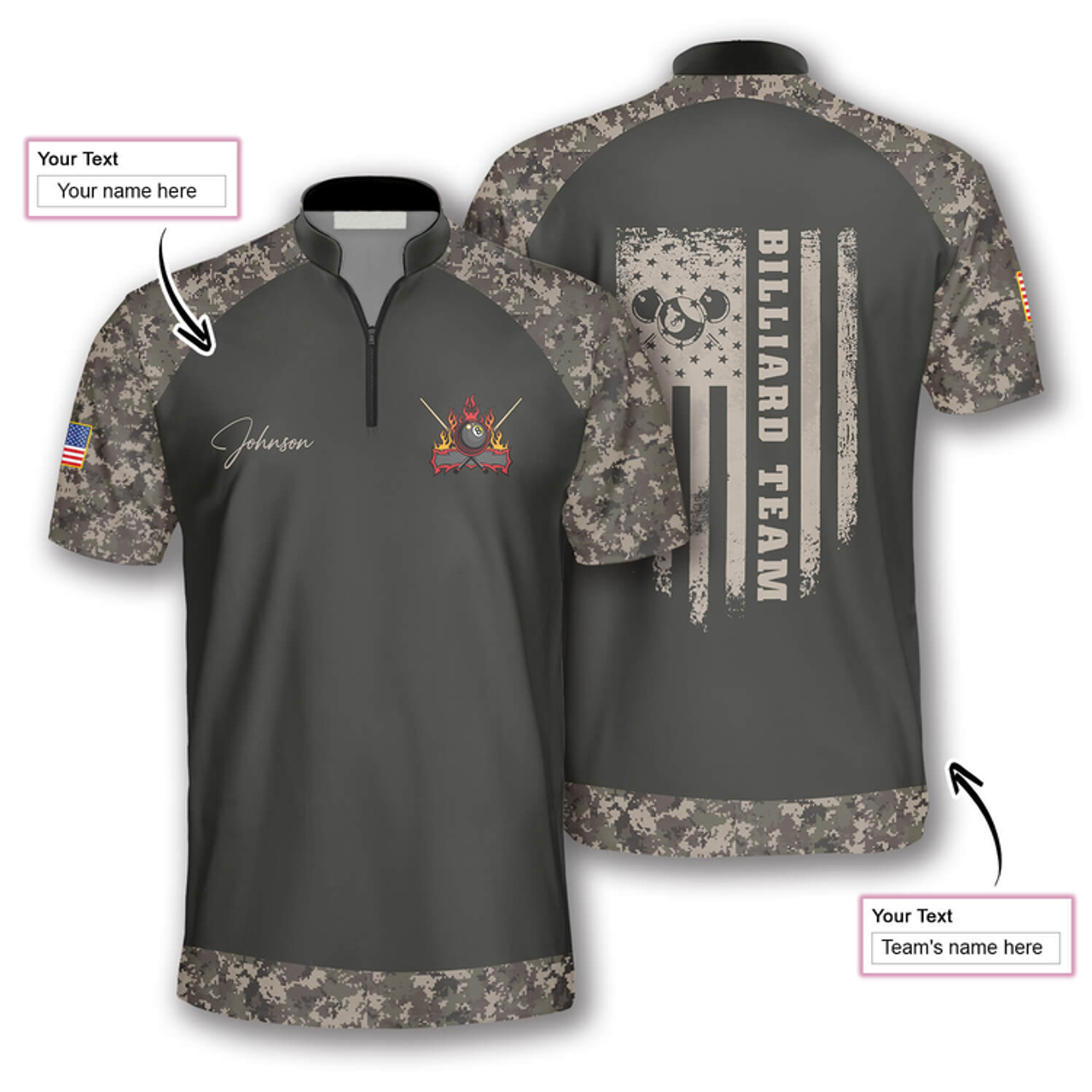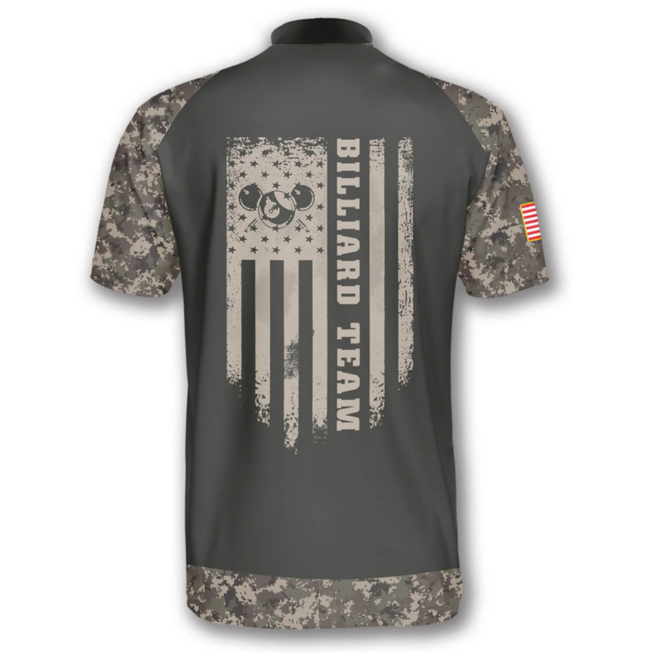 Custom Retro Camouflage Flag Custom Billiard Jerseys for Men, Uniform for Team Billiard, Flag Zipper Polo Shirt