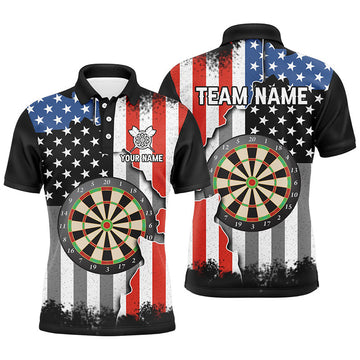 Custom Ripped Retro Us Flag Darts Polo Shirt Custom Patriotic Darts Shirt For Men Dart Jerseys