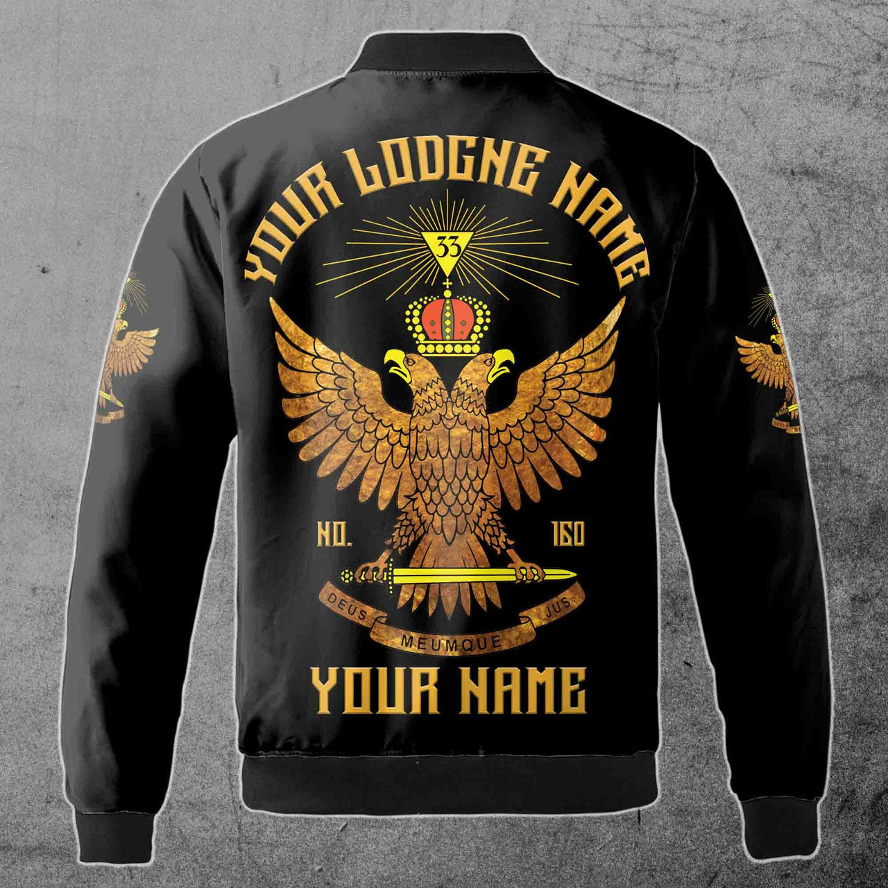 Custom Scottish Rite 33 Degree Eagle Wings Up Masonic Unisex Bomber Jacket S-5XL