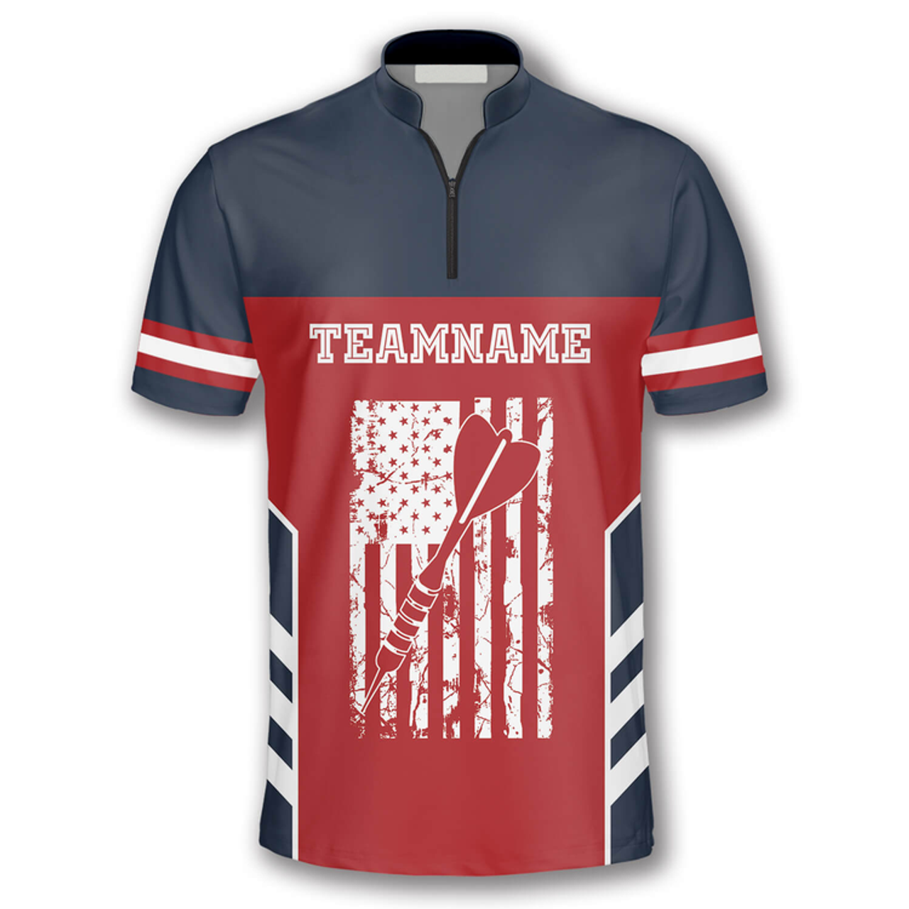 Custom Skull American Flag Red Blue Custom Darts Jerseys for Men, Dart Shirt, Flag American Zipper Polo Shirt