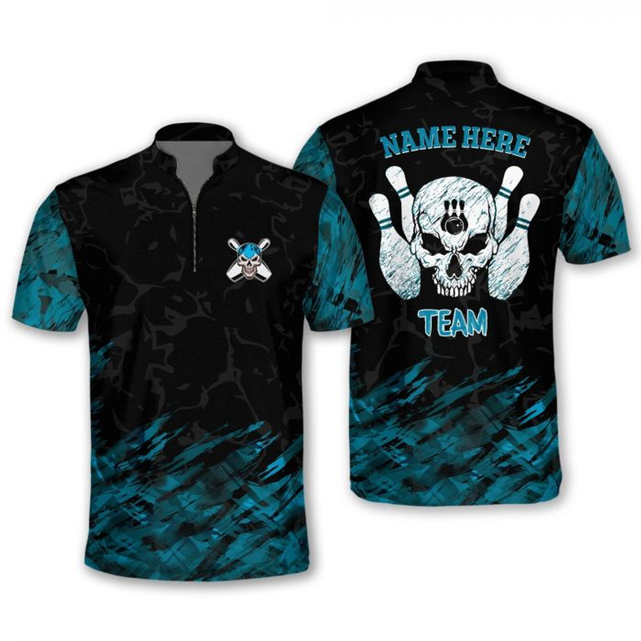 Custom Skull Bowling Jersey For Team Gift for Dad Men Bowling Lovers