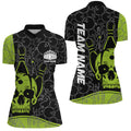 Custom Skull Bowling Shirts For Women, Green Bowling Team Jerseys Bowling Polo Shirt