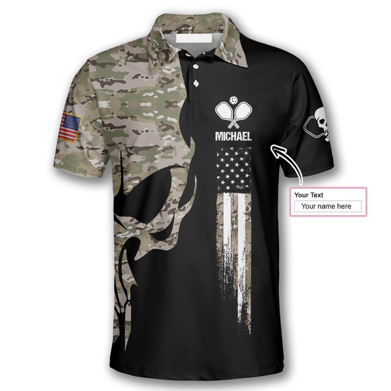 Custom Skull Camouflage American Flag Custom Pickleball Shirts For Men
