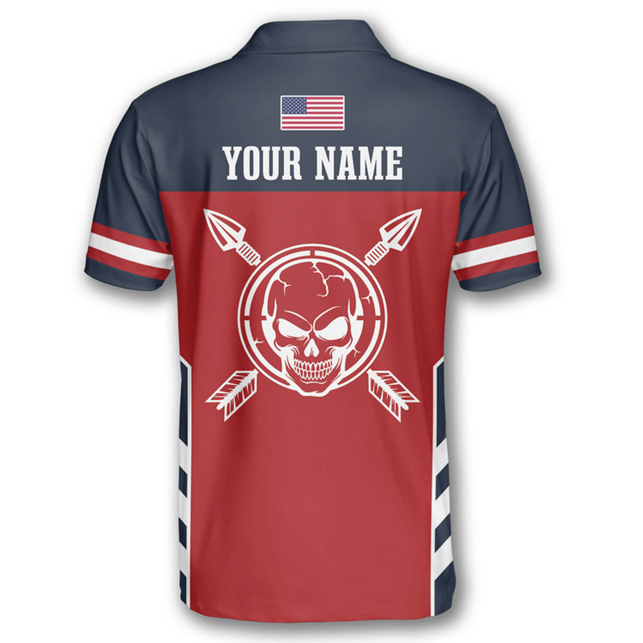 Custom Skull Flag Red Navy Custom Archery Shirts For Men, Skull Shirt, Archery Skull Shirt