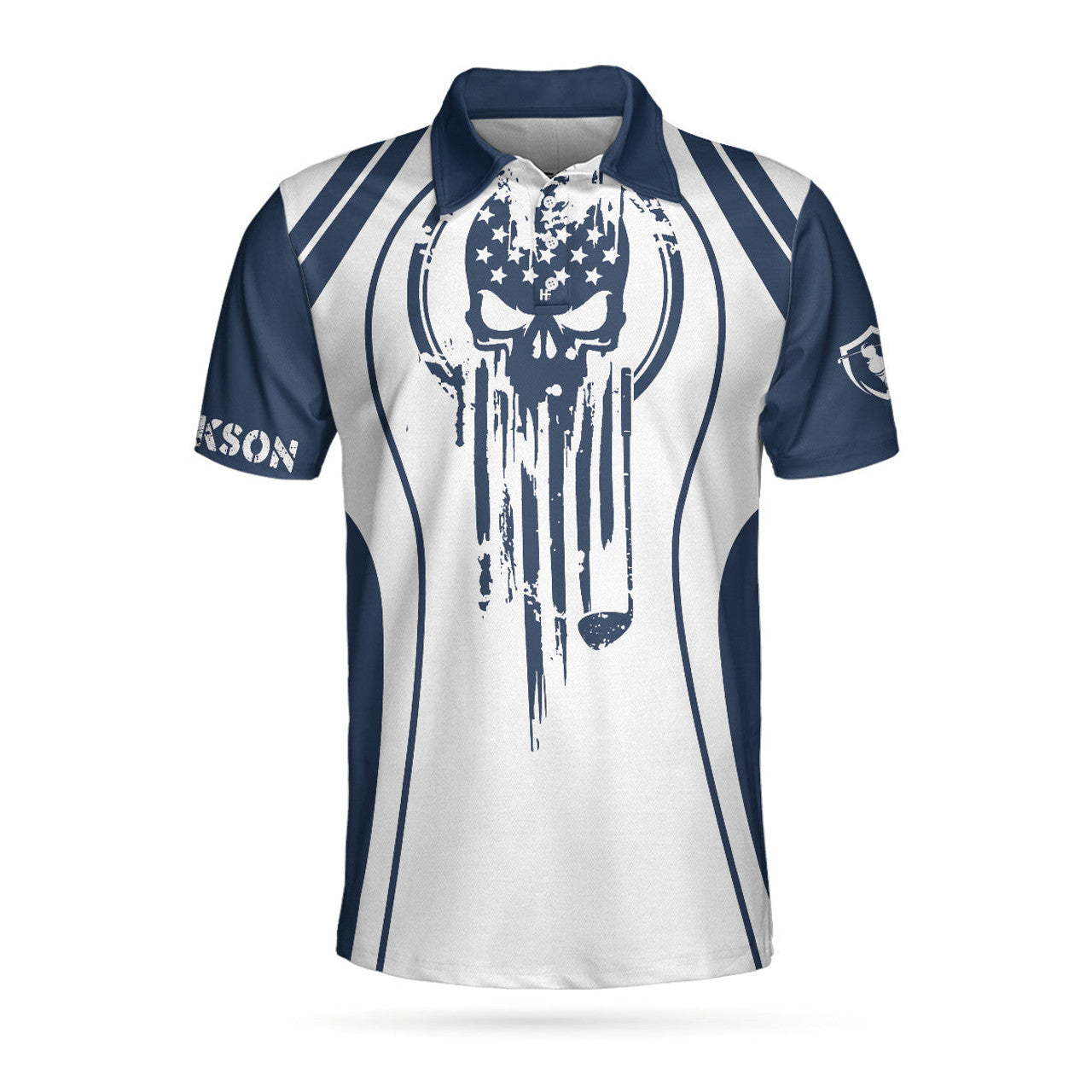 Custom Skull Golf Custom Name Polo Shirt, Personalized Skull American Flag Golf Polo Shirt - Perfect Gift For Men, Golfers