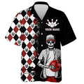 Custom Skull Hawaiian Bowling Shirt Men Women Personalized Name Argyle Bowling Pattern Bowler Team