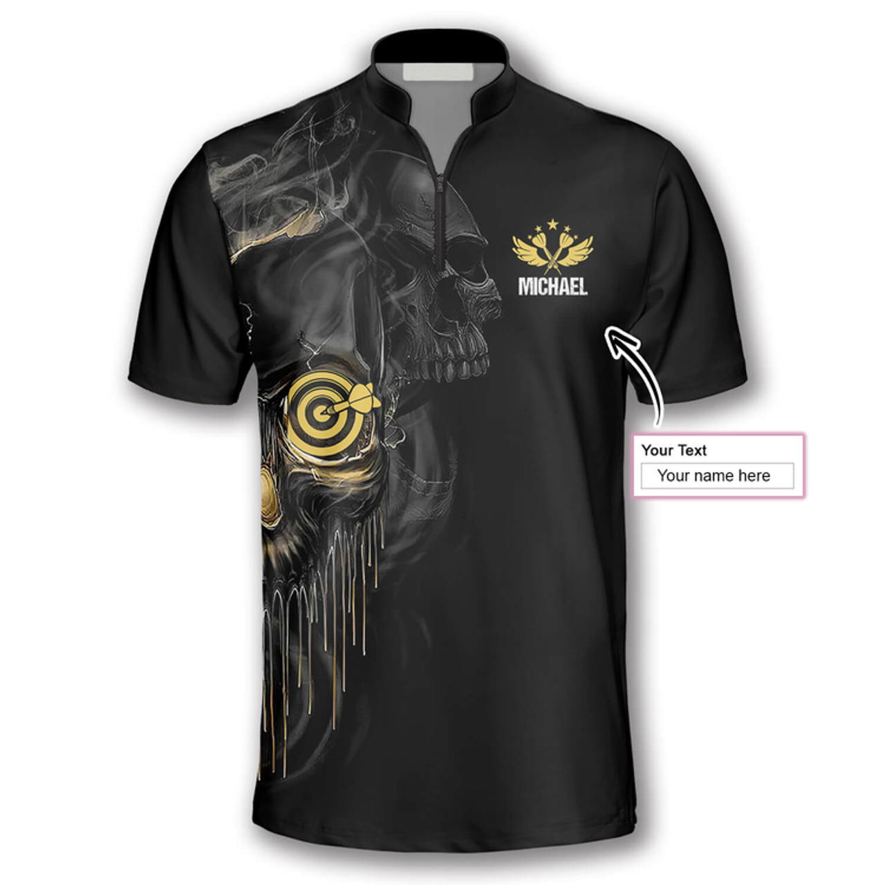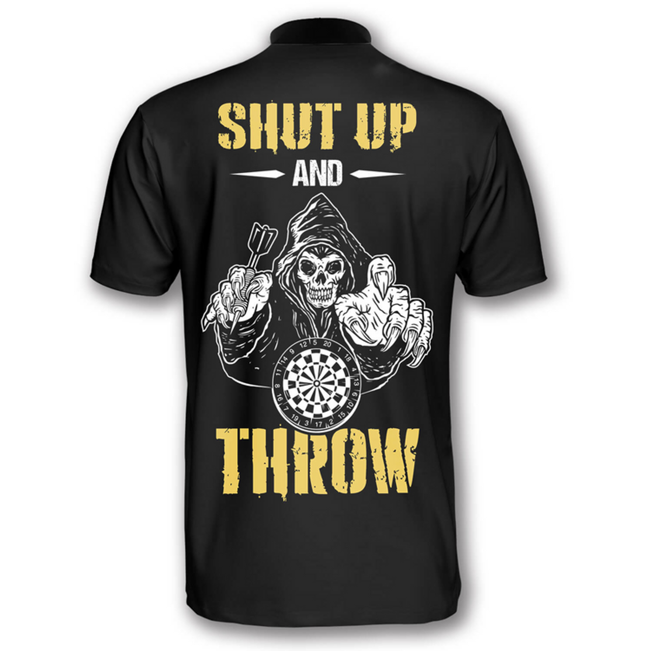 Custom Skull Shut Up and Throw Custom Darts Jerseys for Men, Best Shirt for Dart Player, Skull Zipper Polo Shirt