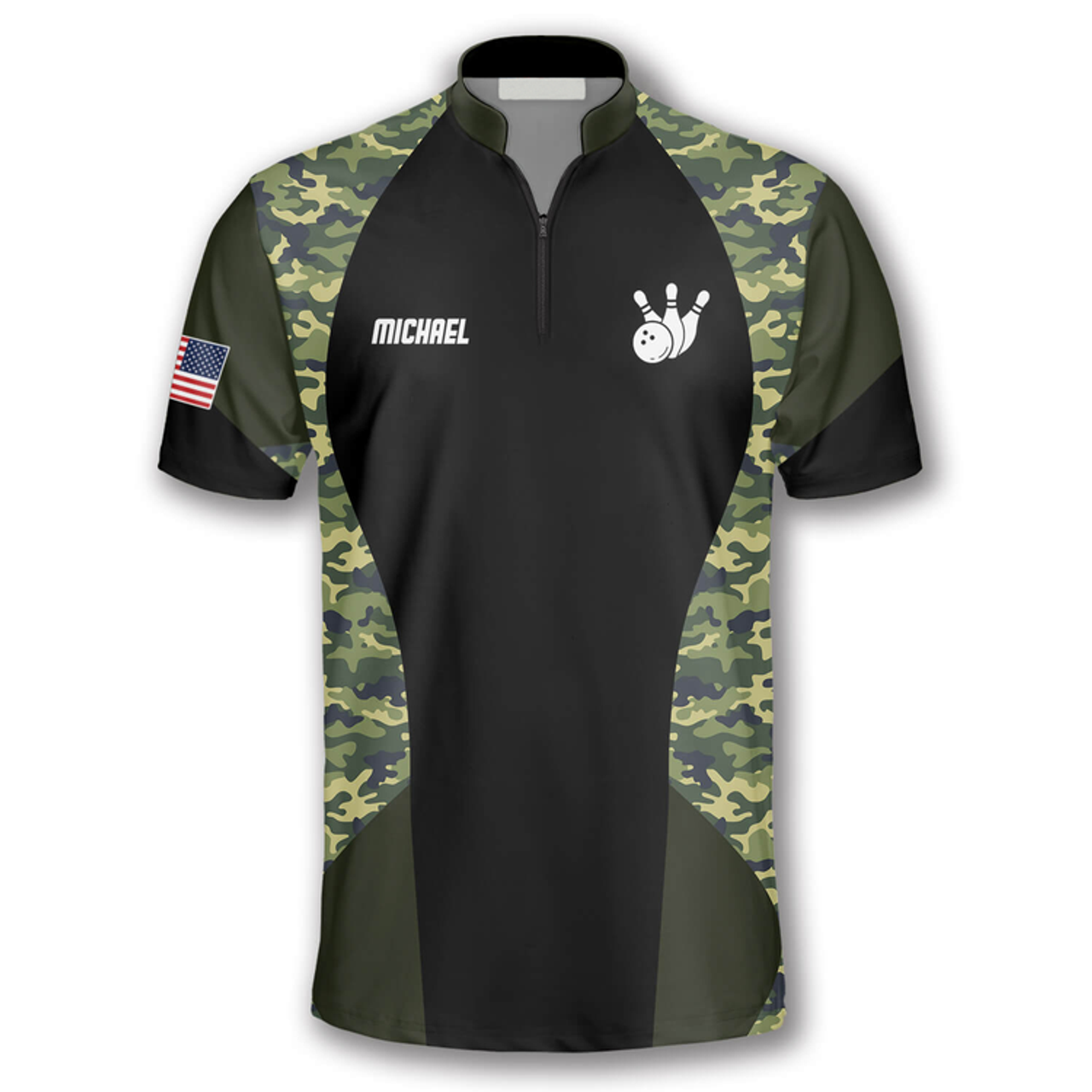 Custom Strike Camouflage Waving Flag Custom Bowling Jerseys for Men, Personalized Name Bowling Shirt