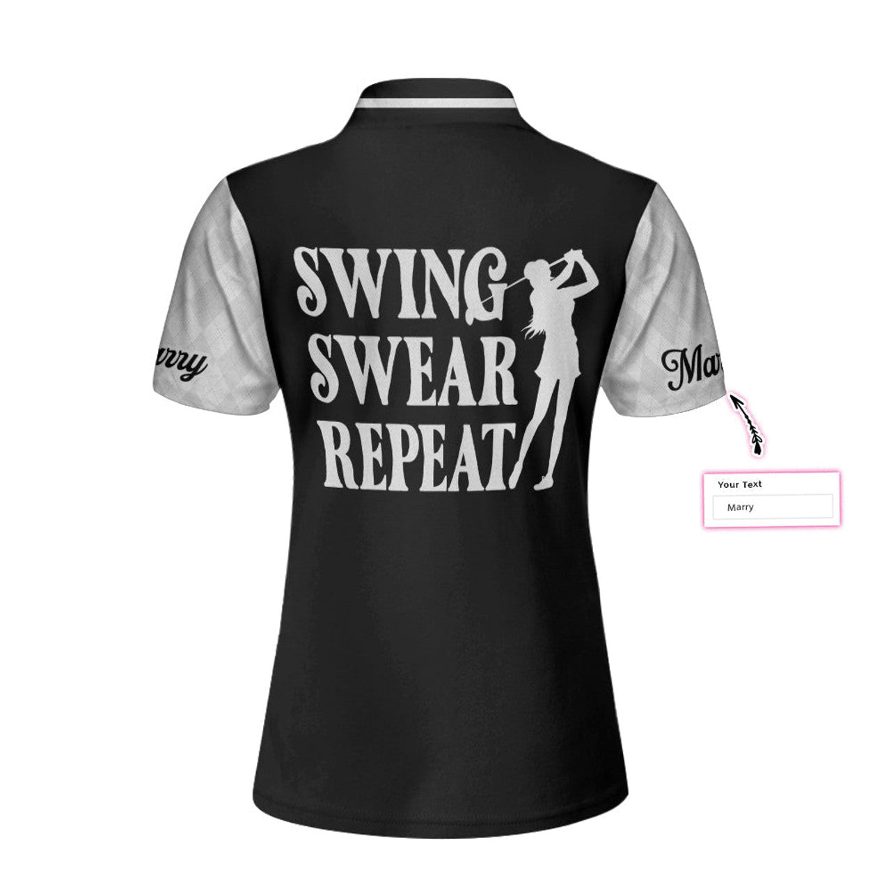 Custom Swing Swear Repeat Custom Short Sleeve Women Polo Shirt, Black And White Golf Shirt For Female Players - Perfect Gift For Women