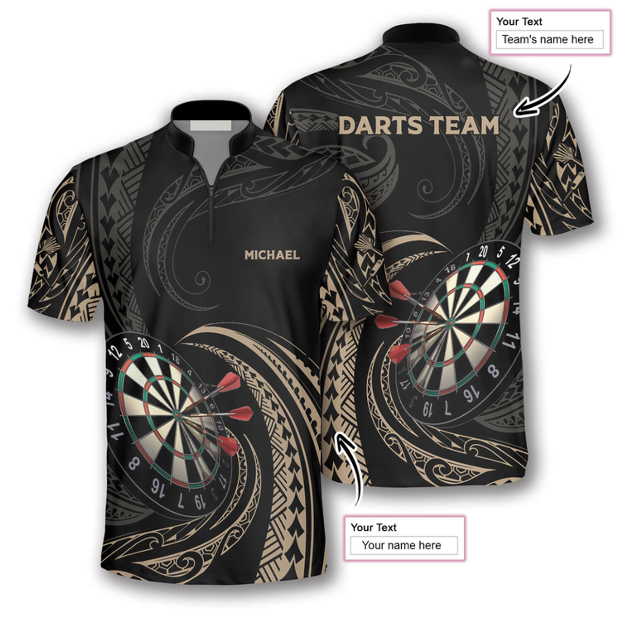 Custom Tangle Tribal Pattern Custom Darts Jerseys For Men, Personalized Name Team Dart Shirt