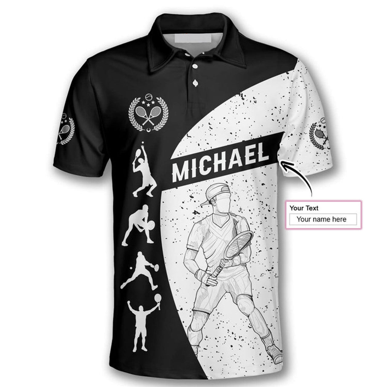 Custom Tennis Silhouettes Black White Version Customized Name All Over Printed Polo Shirt