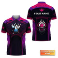 Custom The Blue Bowling Ball Crashing The Pins Purple Pattern Personalized Name 3D Polo Shirt