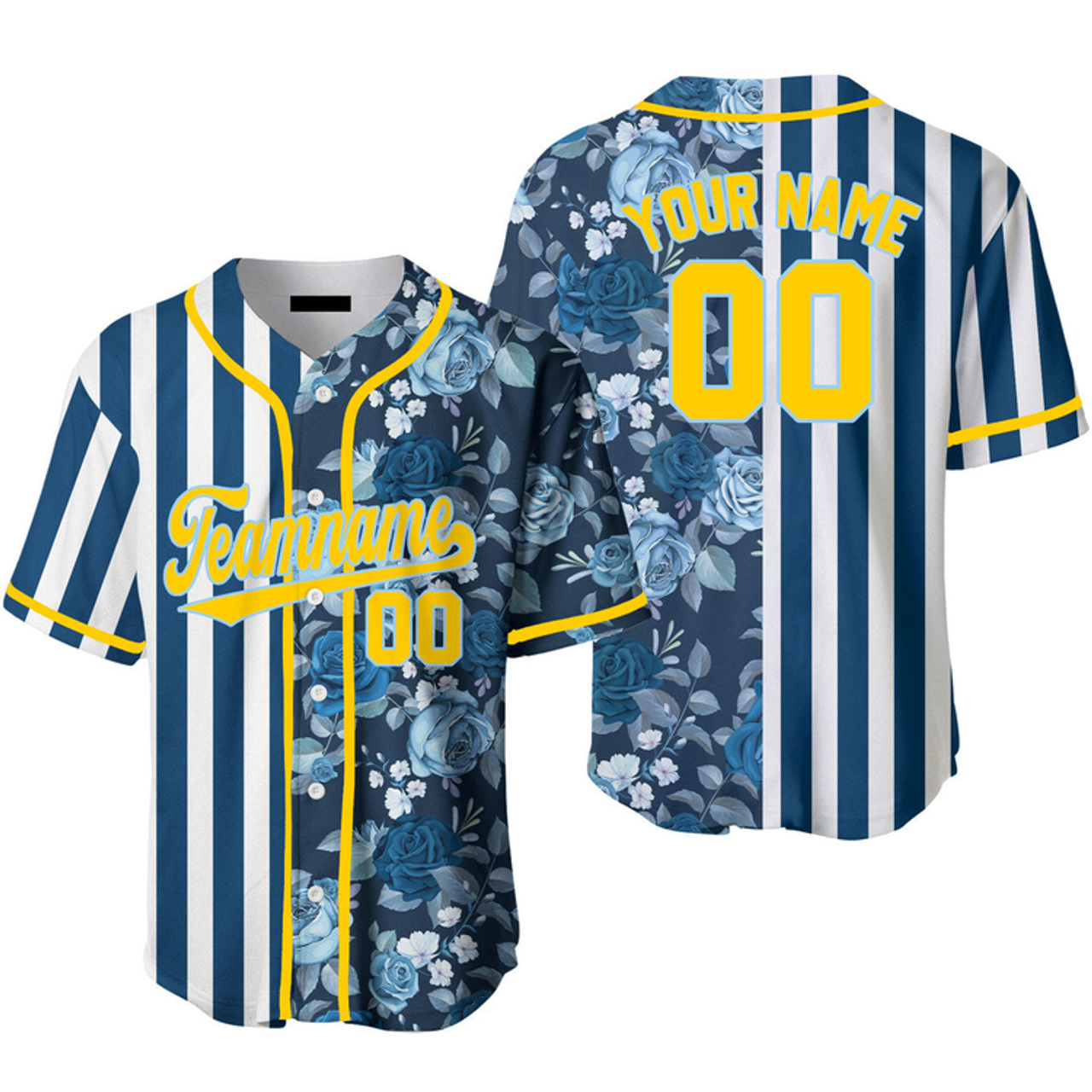 Custom Tropical Blue Navy Yellow - Blue Split Fashion Baseball Jerseys For Men & Women