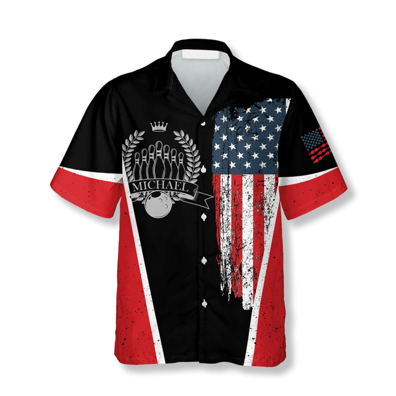 Custom Vintage American Flag Emblem Custom Bowling Hawaiian Shirt, Bowling Shirt, Flag Shirt