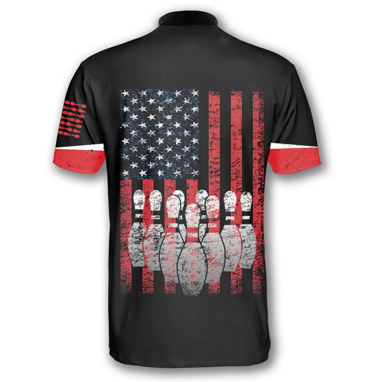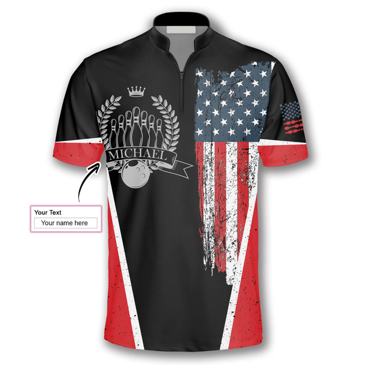 Custom Vintage Flag Crown Emblem Custom Bowling Jerseys for Men, Custom Name Bowling Zipper Polo Shirt