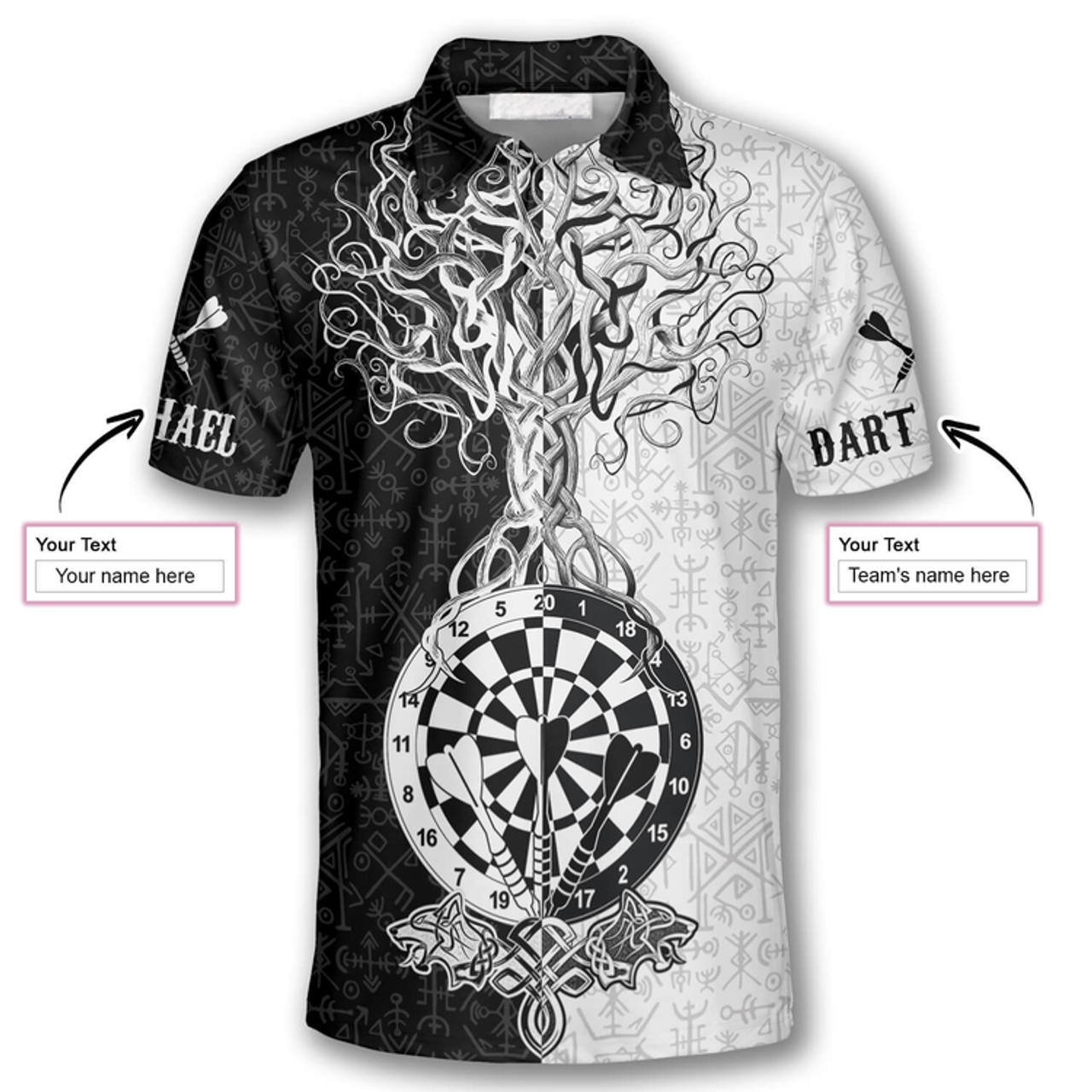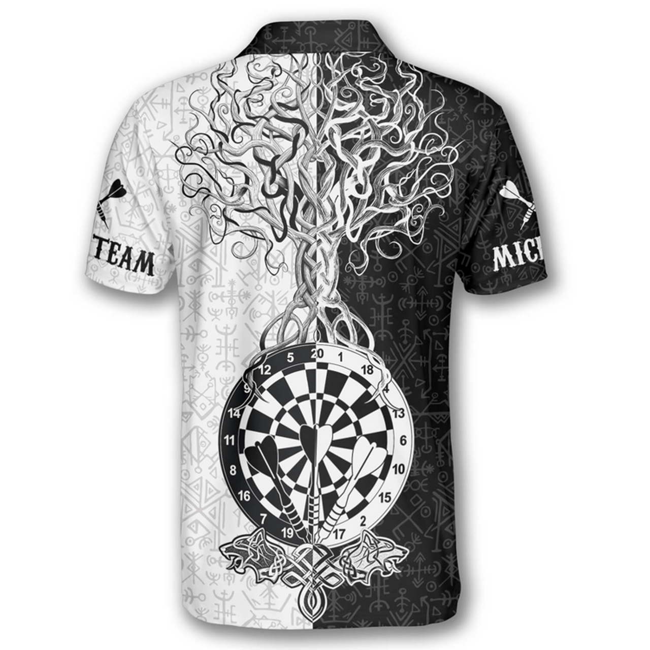 Custom Warrior Viking Black White Custom Darts Shirts For Men, 3D All Over Print Dart Tree Shirt