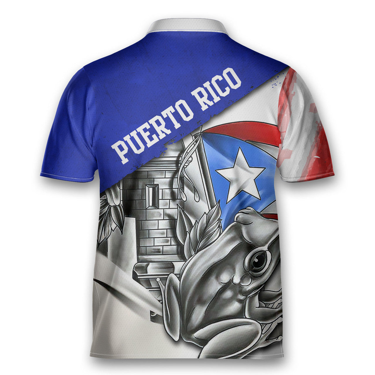 Custom Watercolor Flag Puerto Rico Coqui AOP Bowling Jersey Style Puerto Rican Polo Zipper