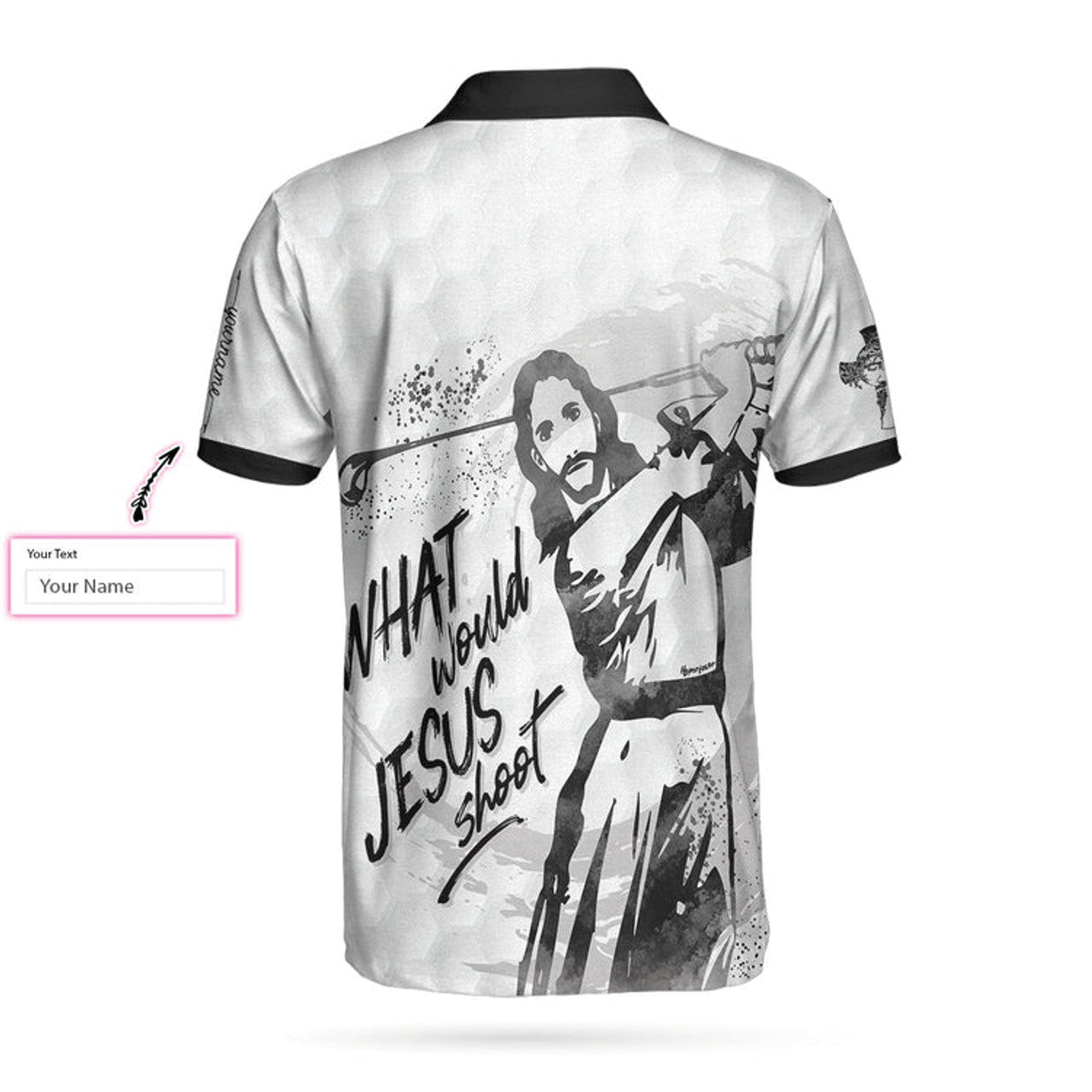 Custom What Would Jesus Shoot Black And White Custom Polo Shirt, Personalized Golf Shirt For Men, Golf Team Uniform