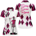 Custom Women Golf Polo Shirts Custom Funny Ladies Golf Skull Pink Zebra Pattern Golf Shirt Swing Swear Repeat, Perfect Gift For Women