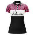 Custom Womens Golf Polo Shirt Custom Name Pink Leopard Pattern Golf Heartbeat, Golfing Gifts For Women , Best Golfing Gift For Women