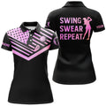 Custom Womens Golf Polo Shirt Galaxy American Flag Custom Name Swing Swear Repeat White Golf Shirt, Perfect Gift For Women