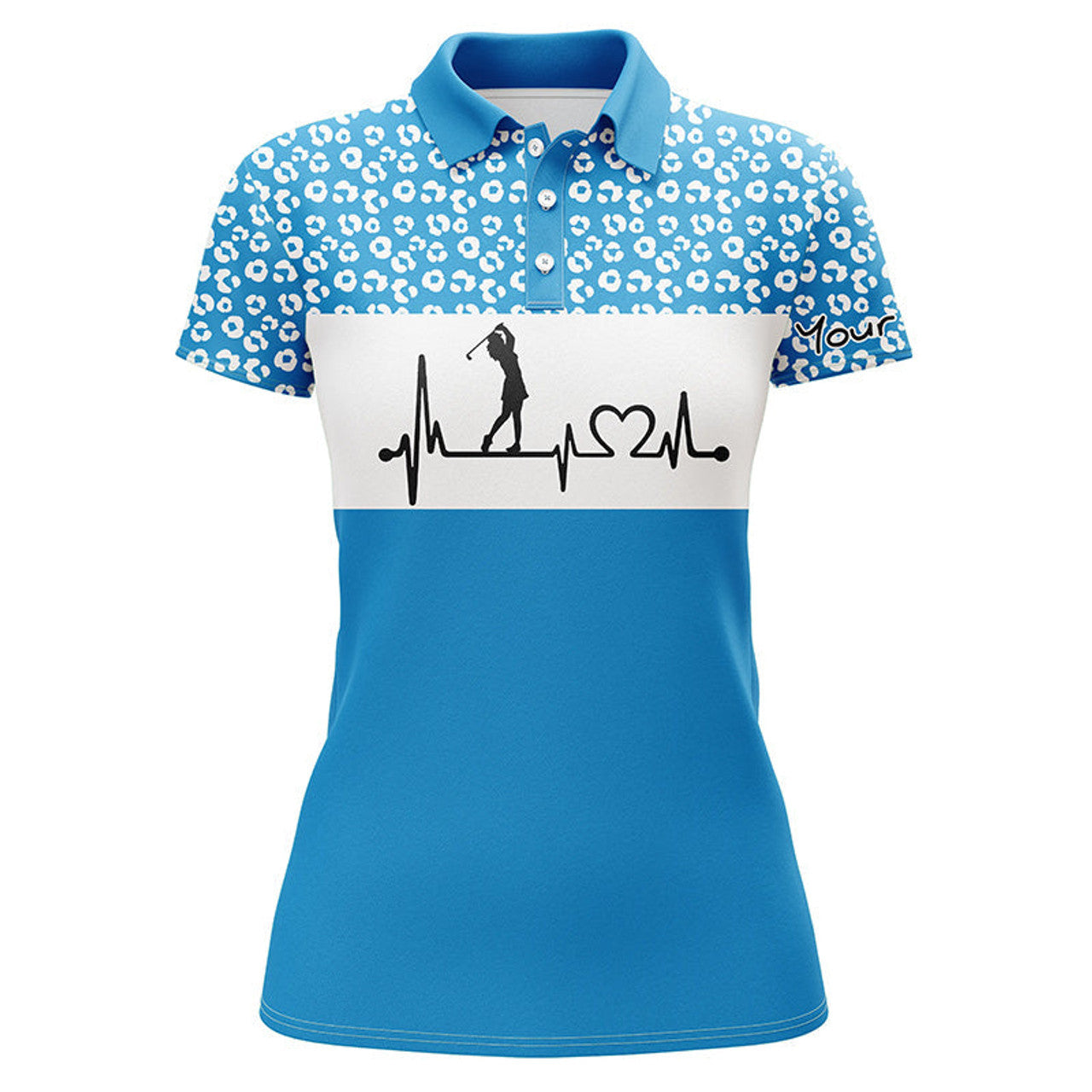 Custom Womens Golf Polo Shirt Golf Heartbeat Custom Name Leopard Pattern Golf Shirt, Womens Golf Gift Ideas, Best Golfing Gift For Women