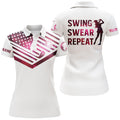 Custom Womens Golf Polo Shirt Pink Galaxy American Flag Custom Name Swing Swear Repeat White Golf Shirt, Perfect Gift For Women