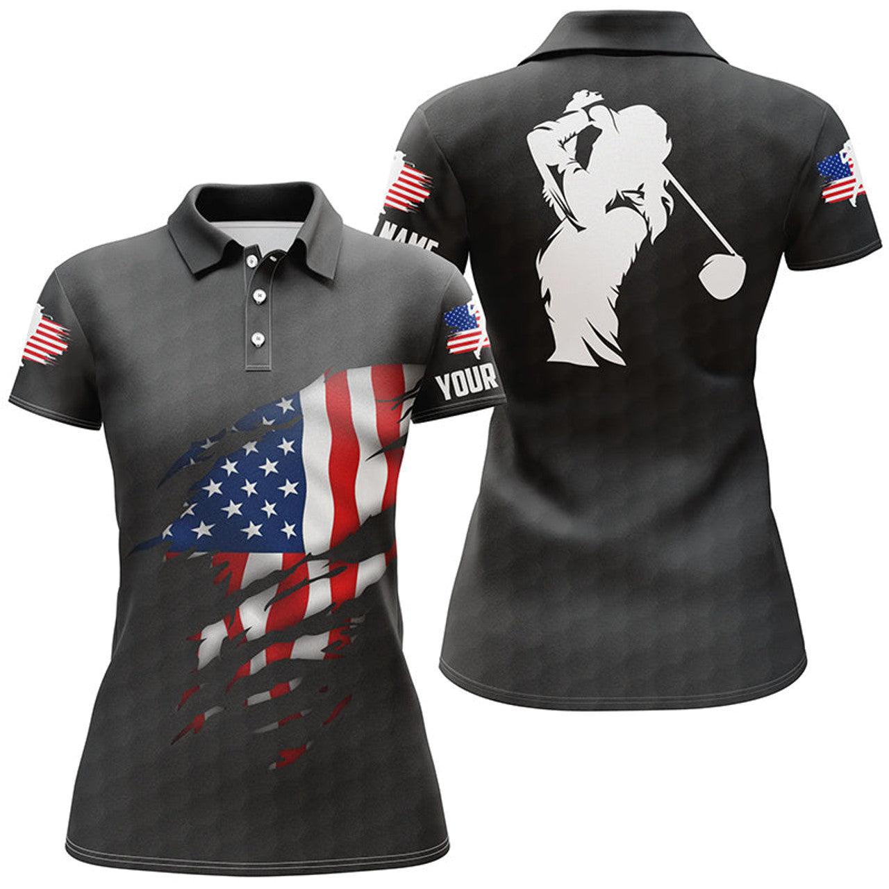 Custom Womens Golf Polo Shirts American Flag Patriotic Golf Shirts Custom Name Golf Polo For Women