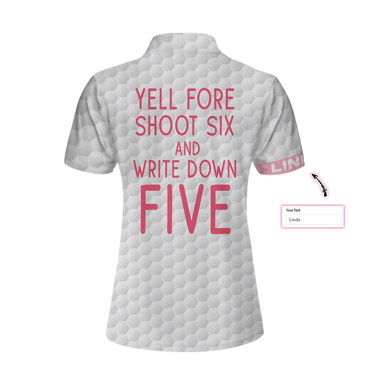 Custom Yell Fore Shoot Six And Write Down Five Golf Custom Short Sleeve Women Polo Shirt, American Flag Golf Shirt For Ladies - Perfect Gift For Women