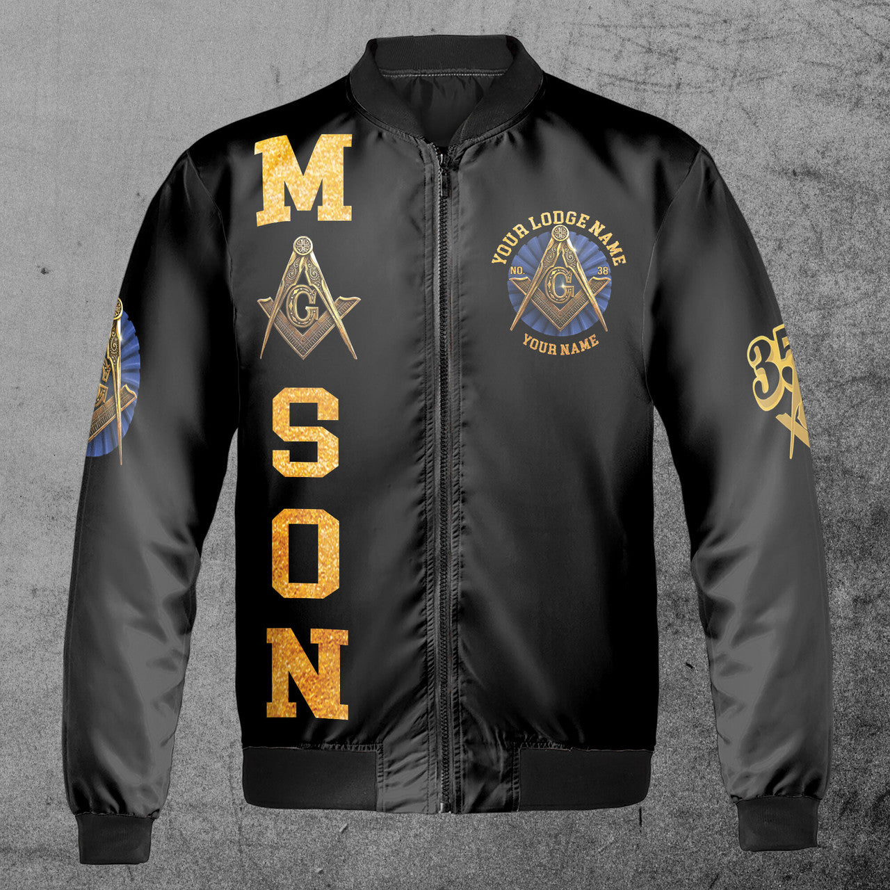 Customize Lodge Name Name and Number Freemasonry Masonic Symbol Unisex Bomber Jacket S-5XL