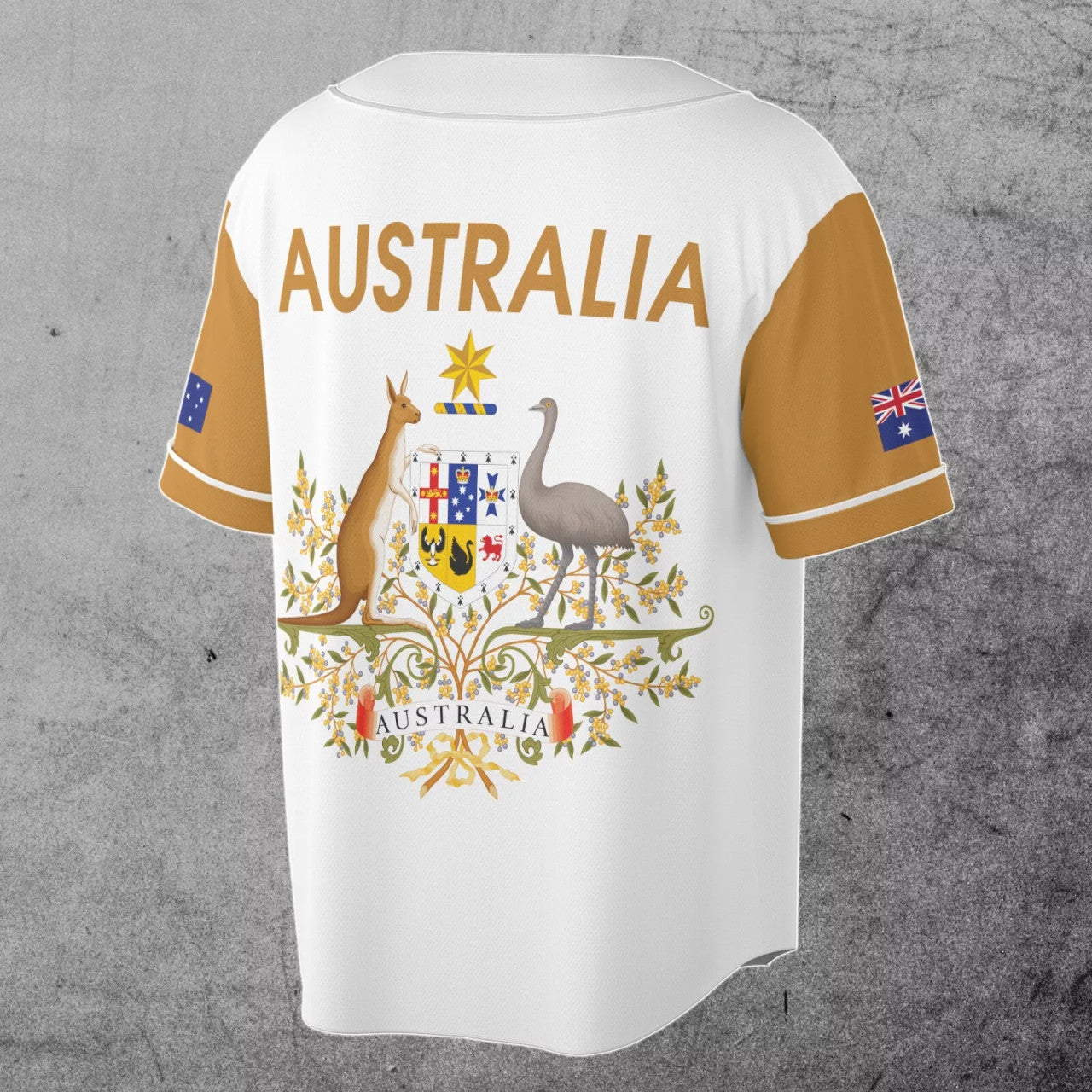 Customize Name Australia Flag Coat of Arms White 3D Baseball Jersey Size S-5XL