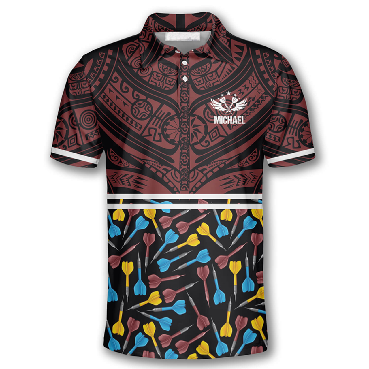 Customized Name Polynesian Pattern Red Black Version Custom Darts Shirts