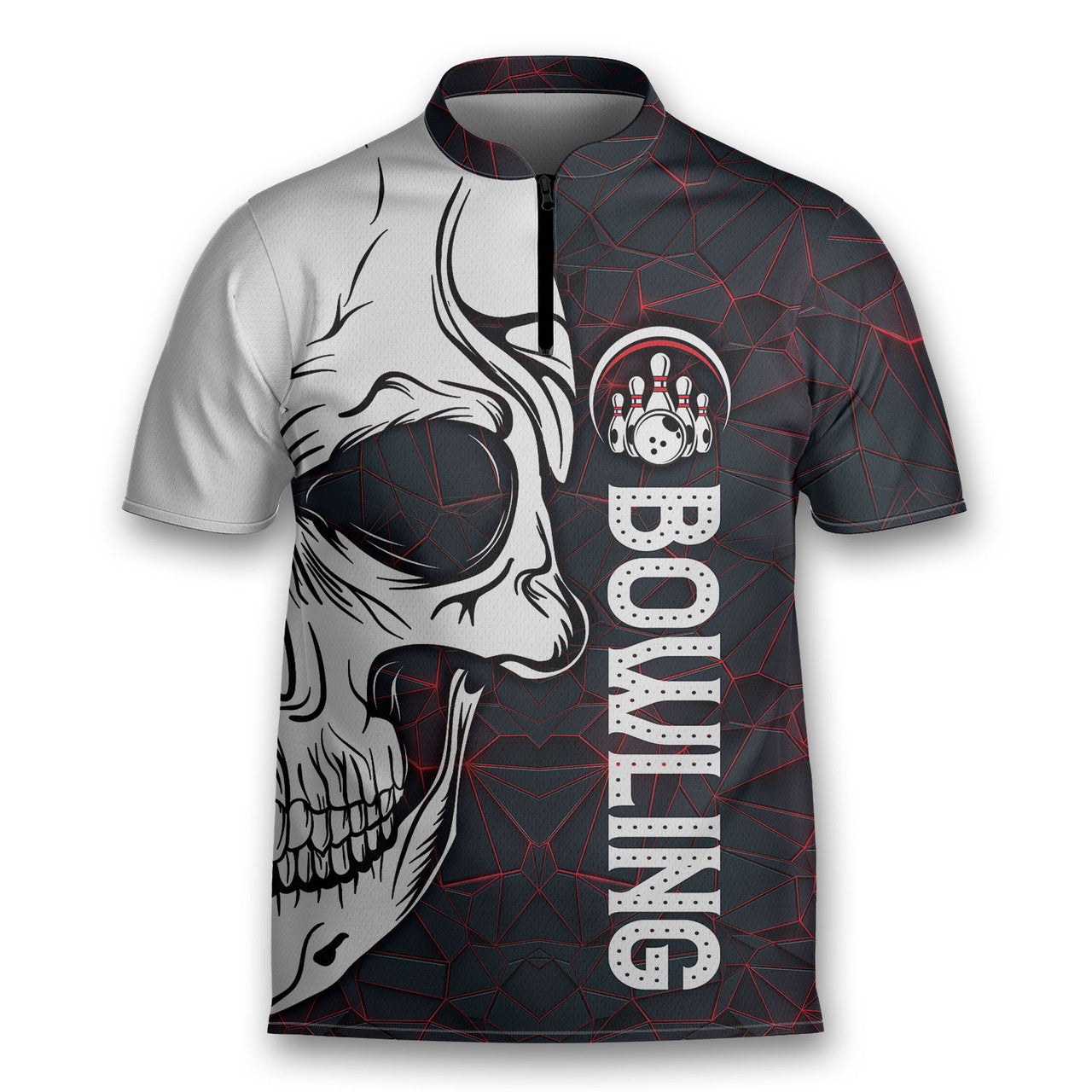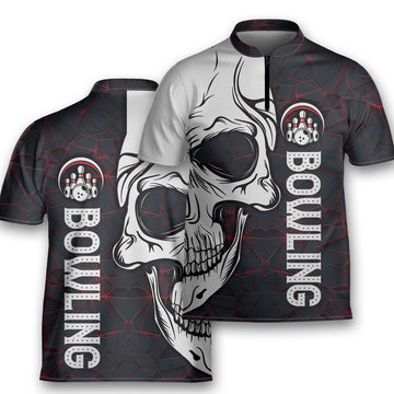 Dark Style Bowling Skull Game Team Bowling Jersey Zipper Shirt