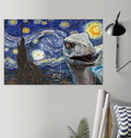 Dinosaur Starry Night Van Gogh Poster and Canvas