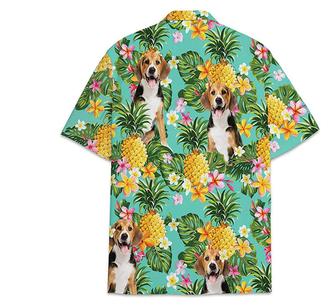 Dog Beagle Pineapple Pattern Short Tall Hawaiian Shirt, Button Up Aloha Shirt For Men, Women