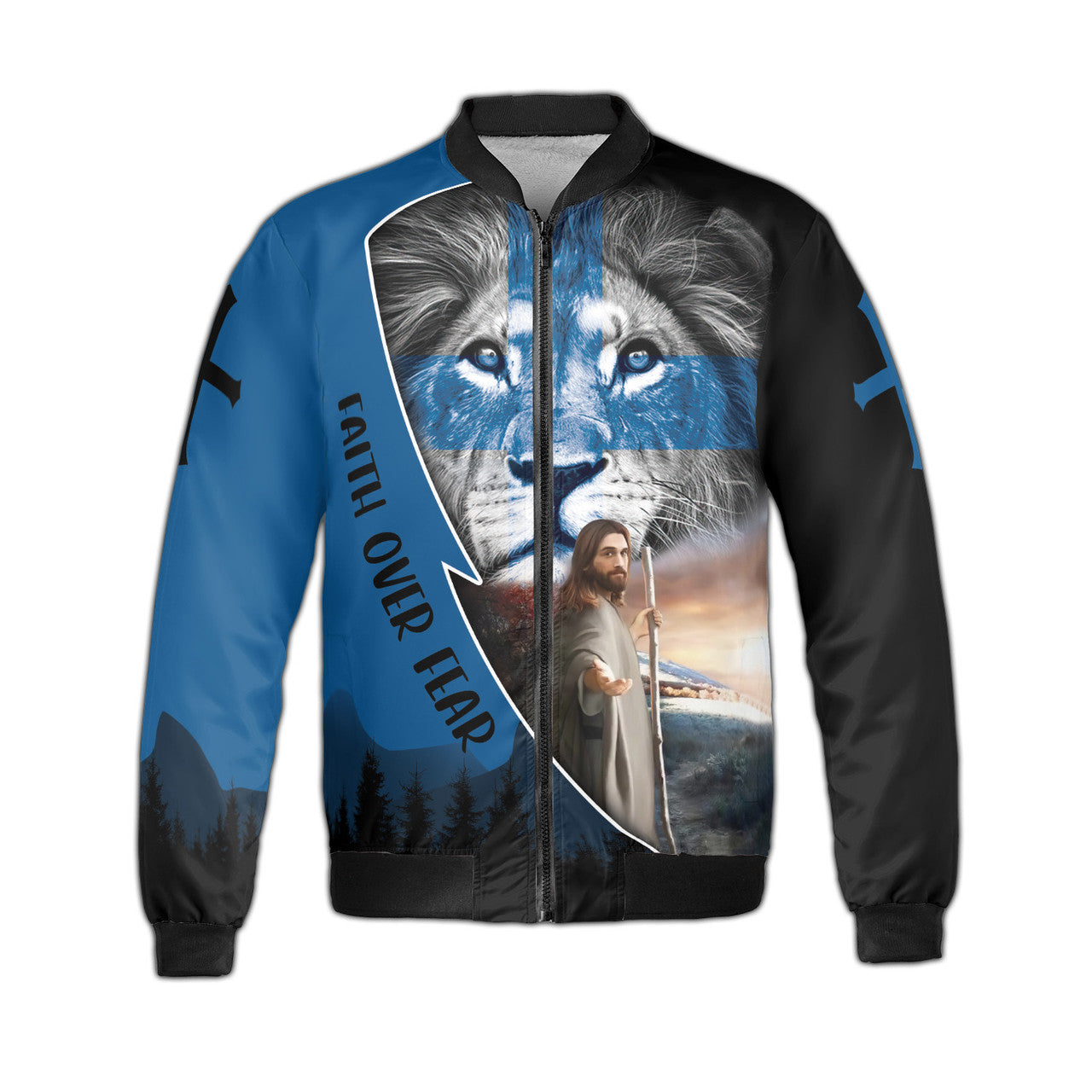 Easter Inspired Faith Theme Lion Graphic Bomber Jacket