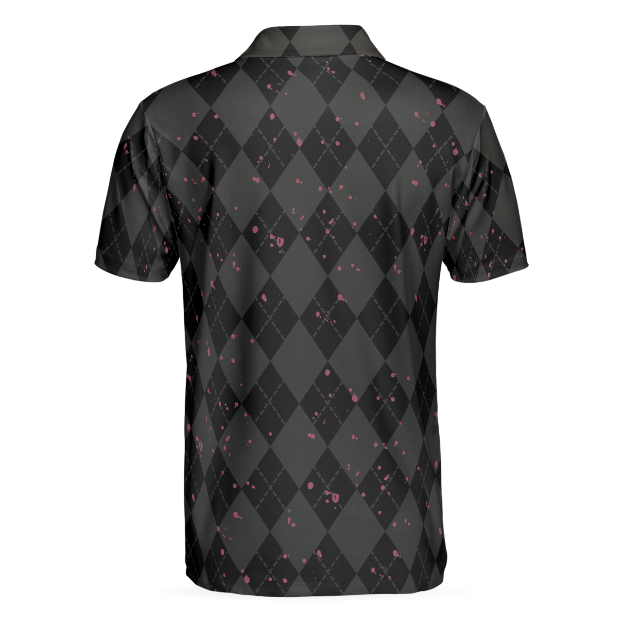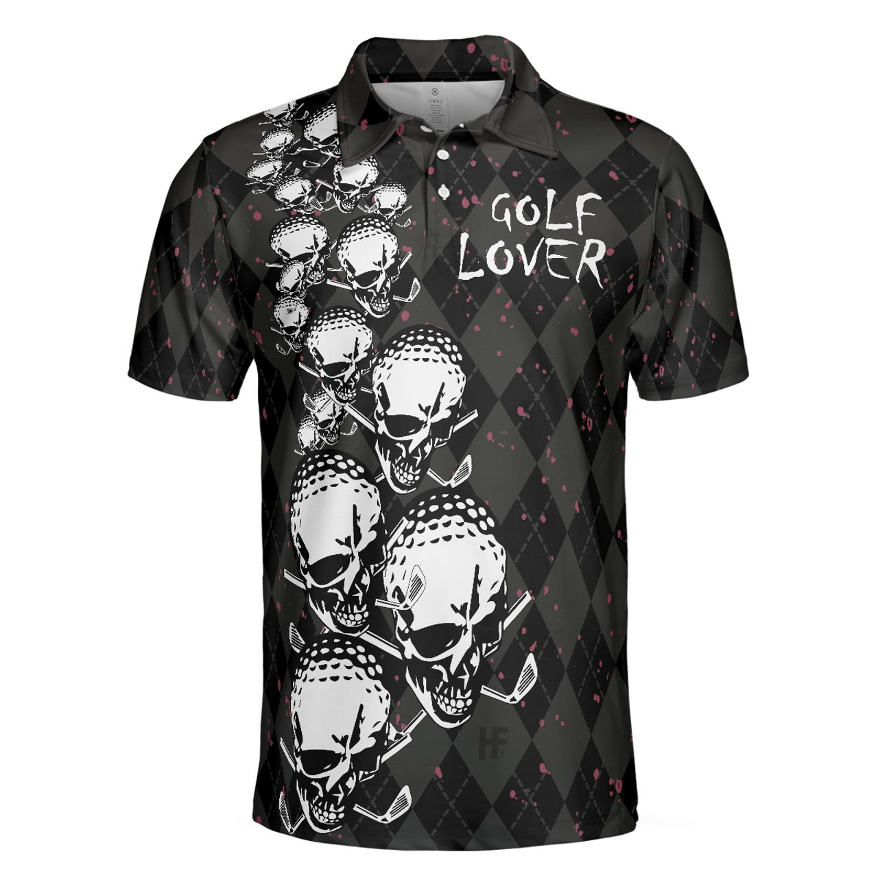 Elegant Argyle Pattern And Skull Golf Lover Polo Shirt, Black Skull Golf Shirt For Men, Best Gift For Men