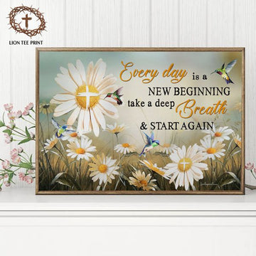 Everyday Is A New Beginning Take A Deep Breath Smile And Start Again Daisy Flower Hummingbird Poster and Canvas