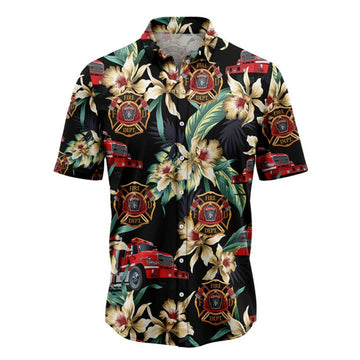 Firefighter Floral Vintage Hawaiian Shirt, Summer Hawaiian Shirts For Men, Women Aloha Beach Shirt, Aloha Shirt